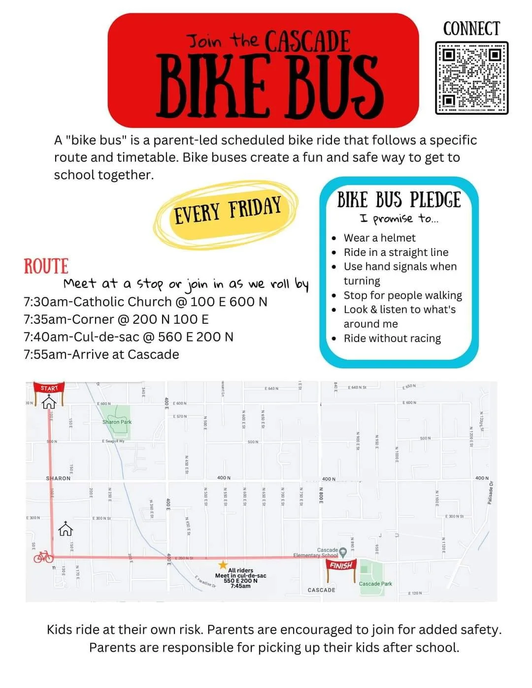BikeWalk Provo helps spread the word about community bike buses but does not run, supervise, or insure these rides. Participation is voluntary and at your own risk. Organizers and participants are responsible for their own safety and compliance with local laws.